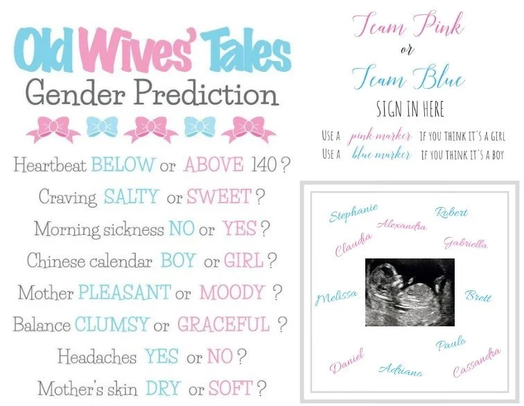 Games make for great entertainment for your guests and it's a fun way to get them involved (and excited) for the gender reveal surprise! Some of our favourite gender reveal activities include name suggestions, which can be very helpful for the parents-to-be, as naming your baby can be quite difficult for some. If your guests enjoy some friendly competition - make it a race! It's always fun to have guests guess the gender which can be done in several ways; having them wear a pink or blue pin, signing their name on a sonogram in pink or blue (makes a great keepsake too!) or an "Old Wives Tales" game sheet which is a way to tell the gender the old fashion way.