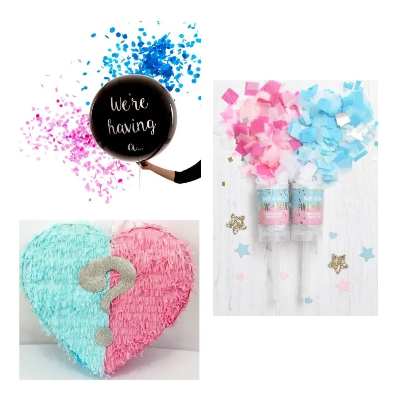 At least one of your guests, if it's not the parents to be, will need to know the gender so they can grab the special party prop. Just make sure to designate someone who can keep a secret. Whether it's an over sized balloon filled with pink or blue confetti, a smoke bomb or a pinata filled with pink or blue candies. Make the gender reveal prop something fun that you and your guests will all enjoy!