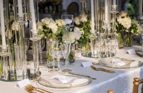 Don’t stop at table décor, layer textures in smaller details like invitation suites, napkin rings, or even your menus. Mixing matte and metallic finishes, soft and structured fabrics, or glossy and natural elements gives your wedding depth and dimension, making it feel intentional and modern while staying classic.
