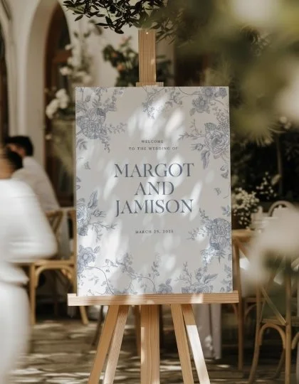 If you are hiring a graphic designer or wedding vendor to craft these signs, make sure you use consistent fonts and colours—ideally ones that tie directly to your overall wedding design. That way, if your venue is hosting multiple events in one day, your guests will immediately recognize which signage is yours. Following a distinct pattern makes your signage not only functional but also stylish and visually striking.